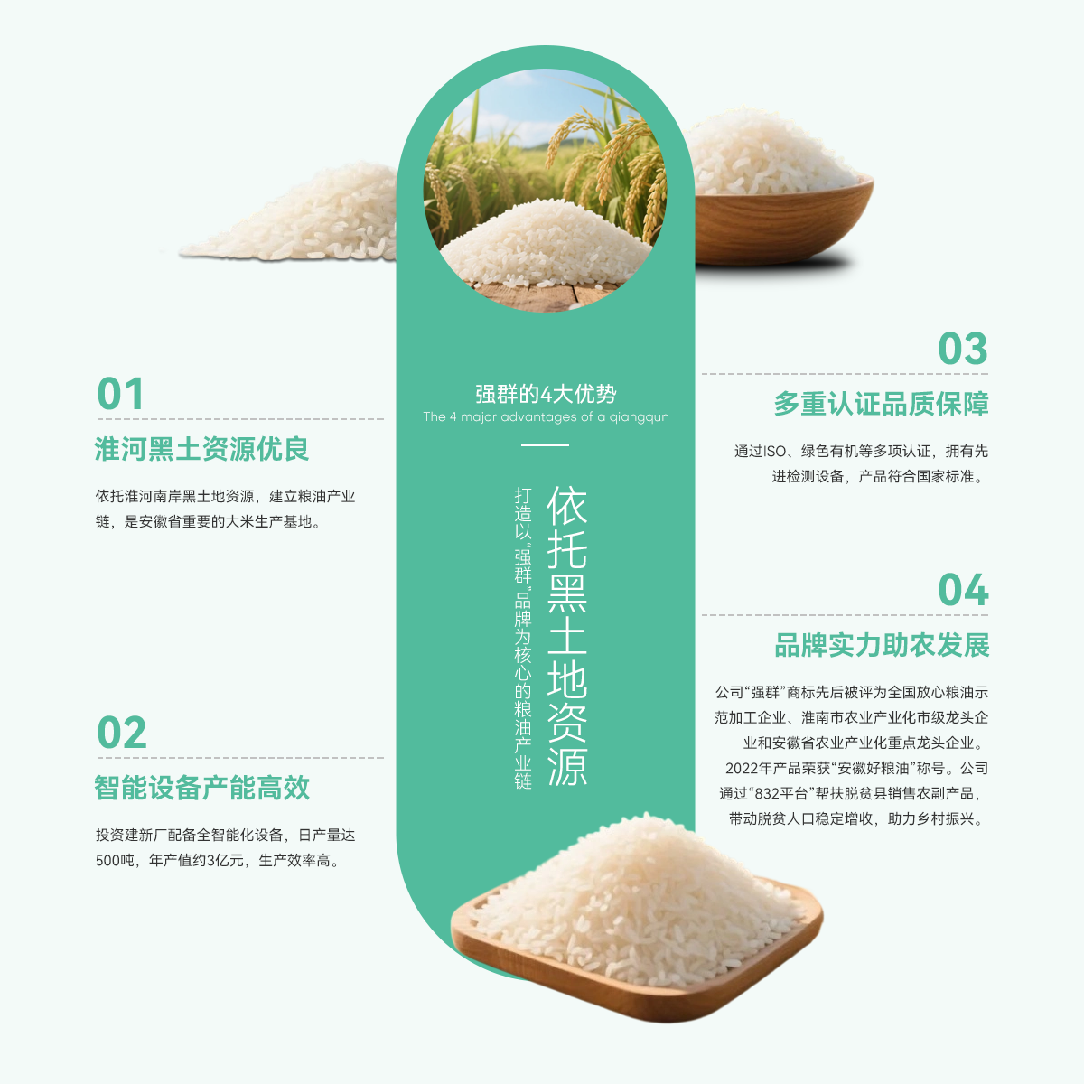 - 壽縣強(qiáng)群糧油貿(mào)易有限公司成立于2011年,座落在淮南市壽縣澗溝鎮(zhèn),是一家集種植、加工、收儲、銷售于一體、以生產(chǎn)中、高檔質(zhì)優(yōu)、特色類大米為主的綜合性企業(yè)。公司依托準(zhǔn)河南岸的黑土地資源,打造以“強(qiáng)群”品牌為核心的糧油產(chǎn)業(yè)鏈,是安徽省重要的大米生產(chǎn)基地。 為響應(yīng)市場增長需求,公司2021年啟動二期擴(kuò)產(chǎn)工程,其中新生產(chǎn)廠區(qū)建設(shè)投入資金近億元,建設(shè)現(xiàn)代化新生產(chǎn)線,總占地面積約4000...